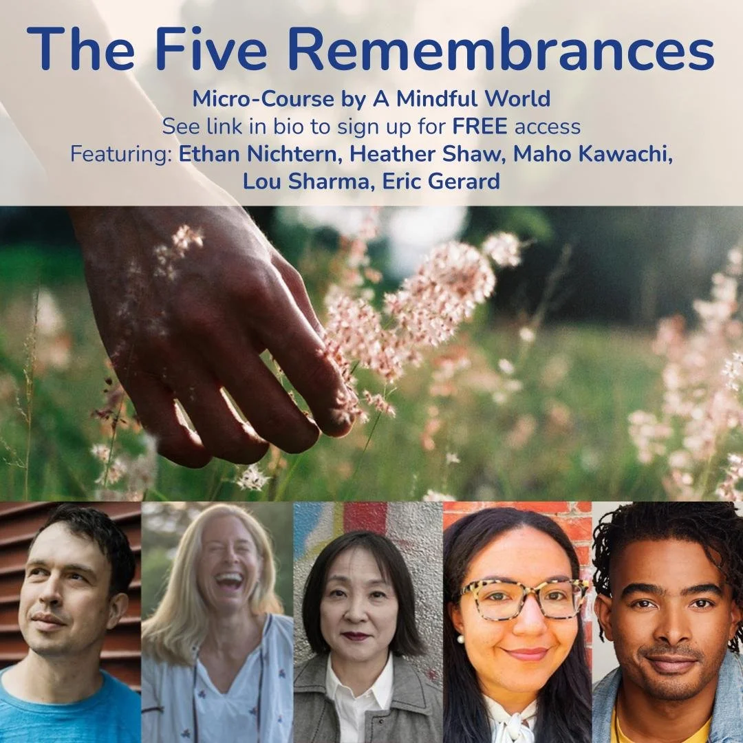 Join my friends at A Mindful World and I as we launch our very first offering on this new online platform/emergent drama community. A Mindful World is dedicated to bringing the deep psychological and spiritual teachings, as well as practical tools of mindfulness meditation into life as it unfolds in the modern world. In this first (free!) on-demand course, each of us offers a brief reflection on how understanding the Buddhist teachings of the Five Remembrances applies to unlocking the places where we feel stuck, accessing gratitude as a source for joy, as well as helping us remember our (inter)connection with others.